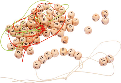 ACHTUNG: WEGEN VERSCHLUCKBARER KLEINTEILE EINZELNE BUCHSTABENPERLEN NICHT FÜR KINDER UNTER 3 JAHREN GEEIGNET!