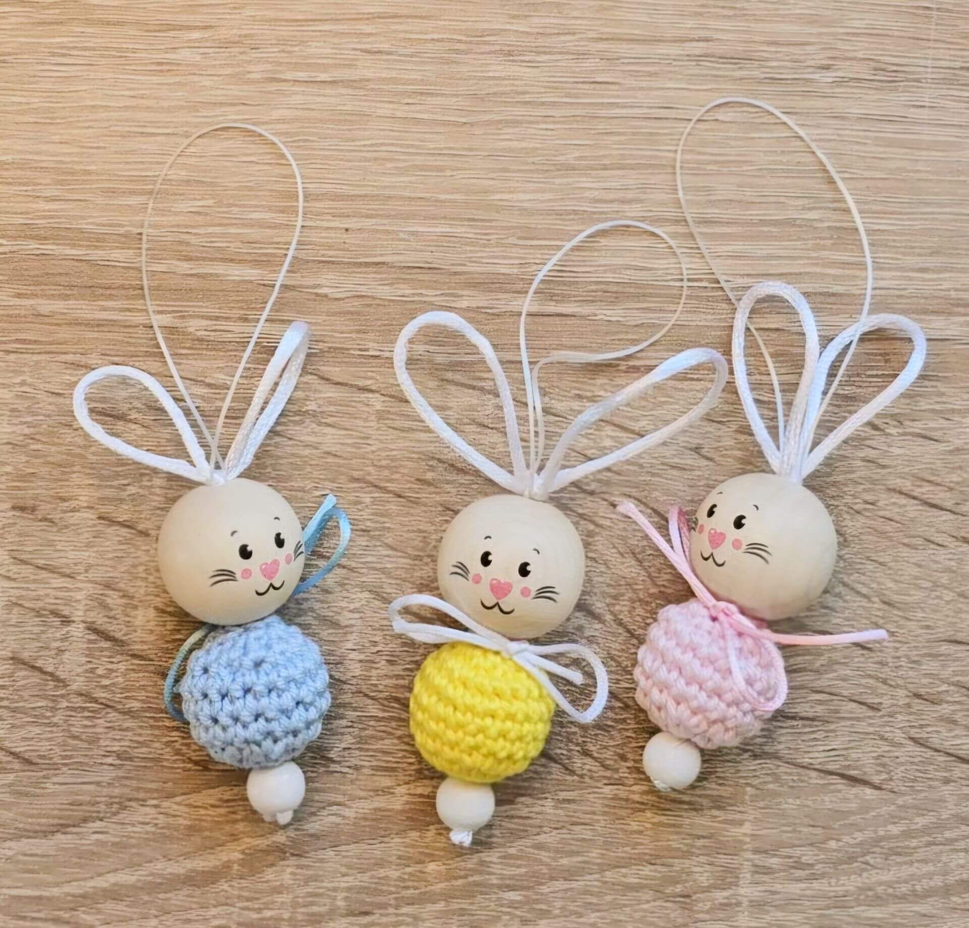 - 1x each 25mm crochet bead yellow, pink, baby blue