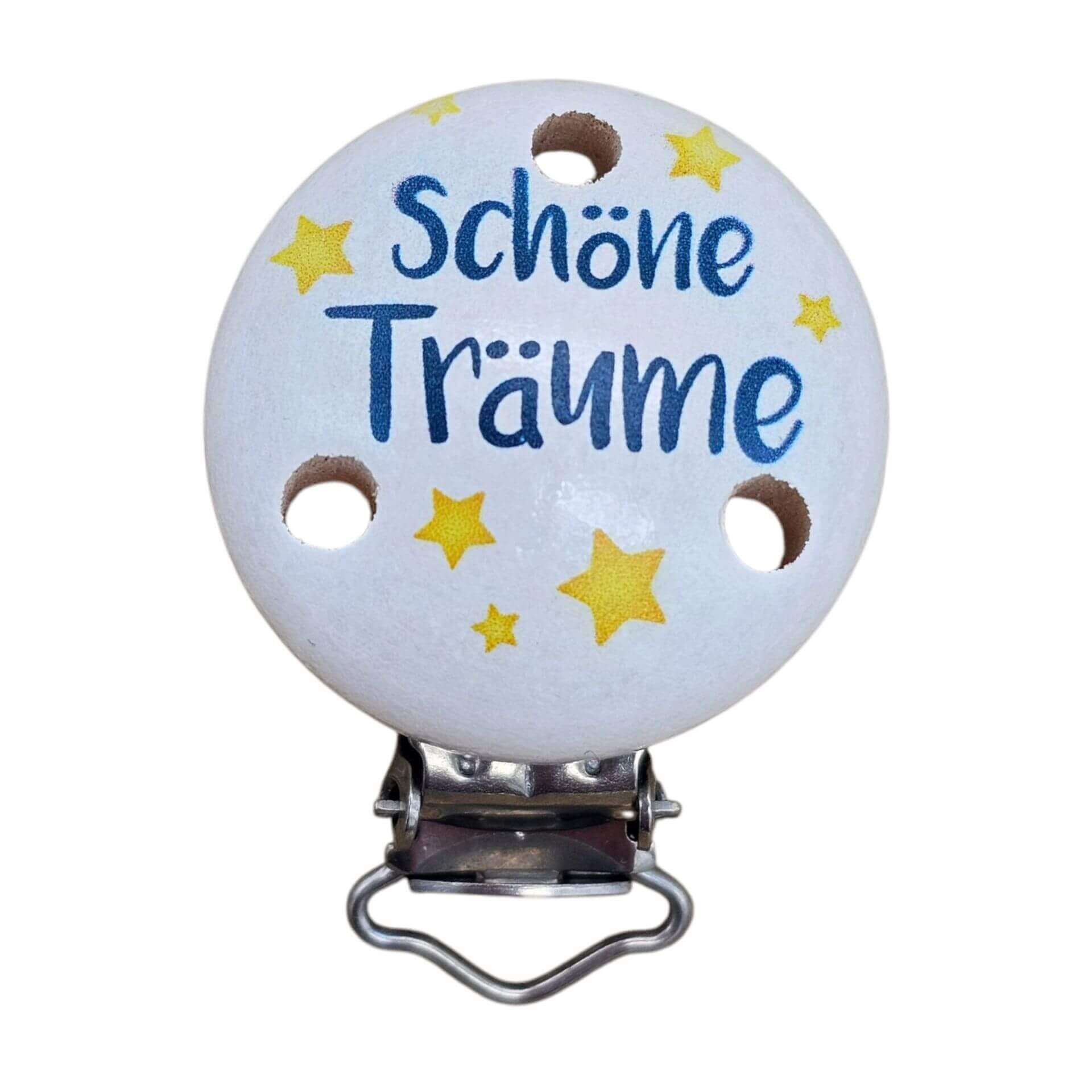 Pacifier clip Ø30mm in solid colors (single color) for making a pacifier holder/pacifier chain in accordance with DIN EN 12586 and DIN EN 71Mini pacifier clips Features:The extra small pacifier clips (30mm) have the following properties: - Material: Wooden top, stainless steel fastener - Color: can be selected from various shades as desired - Made in Germany - Diameter: 30 millimeters - Height: 11 millimeters - 2 ventilation holes with a size of 5 millimeters Graduated prices for mini clips:The unit price is reduced for several clips or larger quantities of 10 and 100 pacifier clips. We offer individual wholesale prices from 1,000 pieces or regular purchases.Mini pacifier clip with a diameter of 30 millimetres for designing unique baby accessories Pacifier clips are indispensable for making pacifier chains and other baby accessories such as mobiles, baby carriage chains or baby car seat toys. To make your own pacifier chains, you need a suitable wooden clip so that the finished chain can be easily attached to the baby's clothes. This prevents the pacifier from constantly falling off. These baby clips have a diameter of 30 millimetres and are therefore smaller than the standard wooden clips in our range. They are therefore perfect for delicate pacifier chains.Mini pacifier clips available in many colors We offer our 30 mm pacifier clips in many different colors. In addition to universally combinable colors such as white, black, natural, silver, gold, light grey and brown, we also have bright shades in our range. From yellow, orange, red, pink and purple to green and blue, anything is possible. For this reason, the mini wooden clips can be wonderfully combined with the other pacifier chain accessories from our store. This means that you can create either delicate tone-on-tone baby toys or colorful pacifier chains. The small baby clips meet the highest safety requirements Whenever babies are involved, safety must be the top priority. This also applies to the pacifier chain material. The finished pacifier chain is often not only played with by babies with their hands and fingers, but also ends up safely in their little mouths. This is precisely why pacifier chain accessories must be absolutely free of harmful substances. This also applies to our pacifier clips with a diameter of 30 millimetres. They comply with DIN EN 12586 and DIN EN 71, which means that they are saliva-proof, sweat-proof and color-fast. The stainless steel fastener is nickel- and rust-free and therefore also harmless. Two ventilation holes, each five millimeters in size, protect the baby from the risk of choking if swallowed. The small pacifier clips are also robust and of high quality, ensuring a long service life.