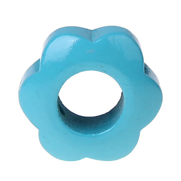Perforated flower for threading is designed for making pacifier chains, baby carriage chains and mobiles for babies.