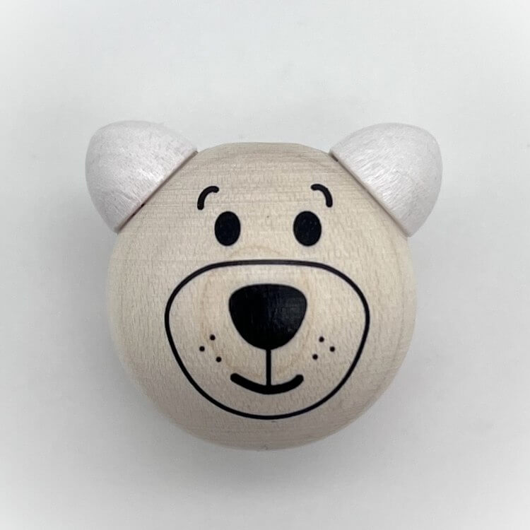 Motivperle Bärchen, Holzperle mit Bär-Gesicht ist zur Herstellung von Schnullerketten, Kinderwagenketten und Mobiles für Säuglinge konzipiert. Motivperle Bärchen unterfällt der Norm DIN EN 71-3 (Neue Norm für Migration bestimmter Elemente). Alle Motivperlen sind schweiß-, speichelfest und farbecht - also für Babys Münder völlig unbedenklich.Eigenschaften Motivperle Bärchen: Material: AhornholzFarbe: wählbar siehe AbbildungGröße: 20 mm x 18 mm x 8 mmMotiv: BärchenBohrung: vertikal, ca. 3 mmHerstellungsland: Deutschland ACHTUNG: WEGEN VERSCHLUCKBARER KLEINTEILE NICHT FÜR KINDER UNTER 3 JAHREN GEEIGNET!