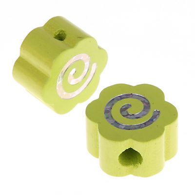 Motivperle Glitzerblümchen Spirale aus Holz zum Auffädeln ist zur Herstellung von Armbändern, Schnullerketten, Kinderwagenketten und Mobiles für Säuglinge konzipiert.