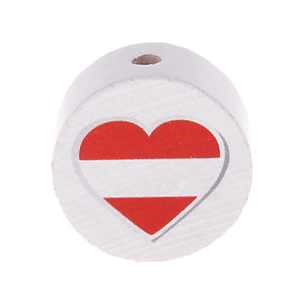 Motivperle Flagge Herz auf holzscheibe zum Auffädeln ist zur Herstellung von Armbändern, Holzschmuck, Schnullerketten, Kinderwagenketten und Babyspielzeug konzipiert.