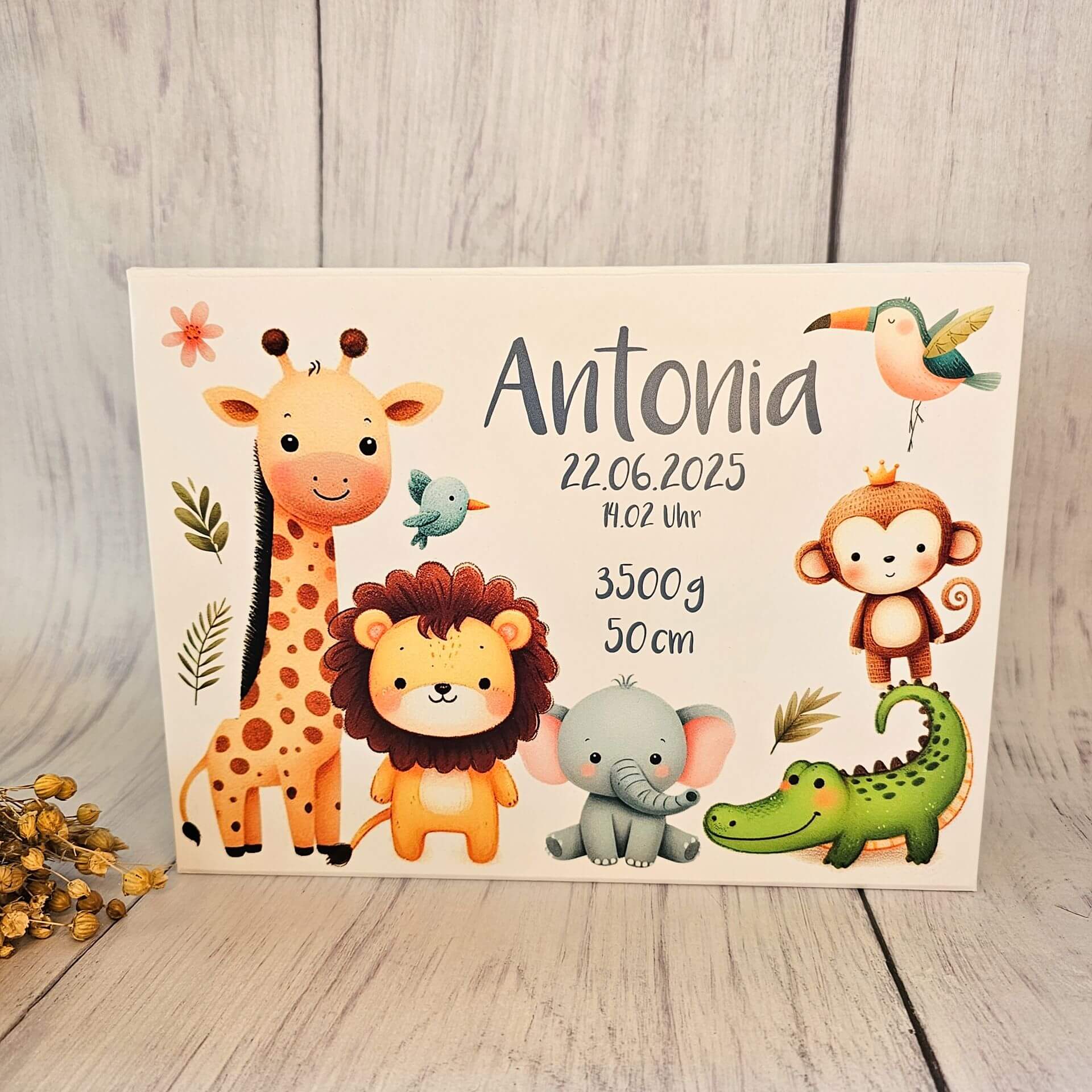 Als Geschenk für werdende Eltern, zur Taufe oder für Dein eigenes Baby – diese Safari-Erinnerungsbox begeistert durch ihr liebevolles Design und ihren emotionalen Wert.